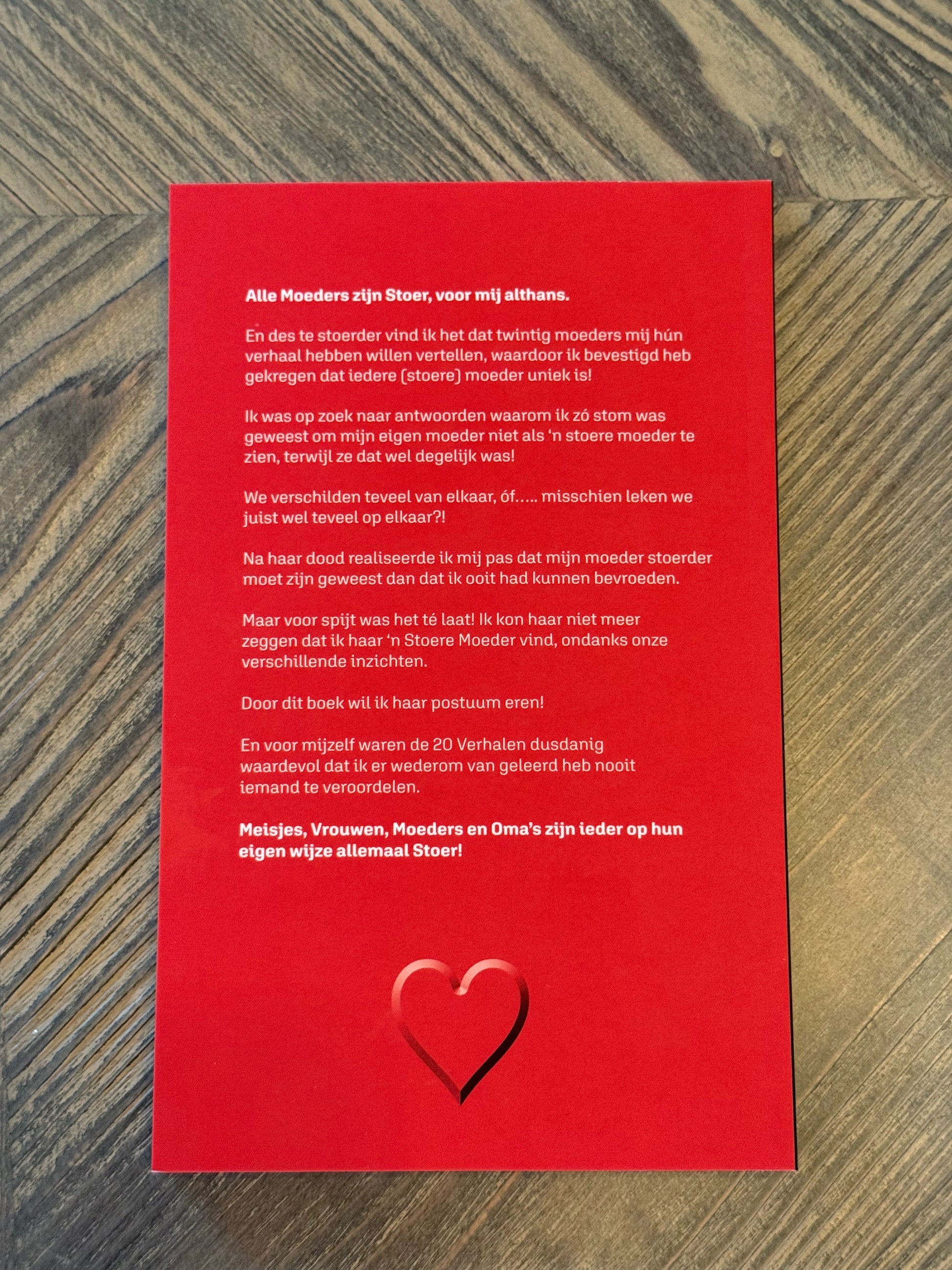 Hij wilde haar na haar dood alsnog eren, en besloot om ook nog verhalen van andere moeders op te schrijven, “want eigenlijk zijn alle moeders stoer”.
