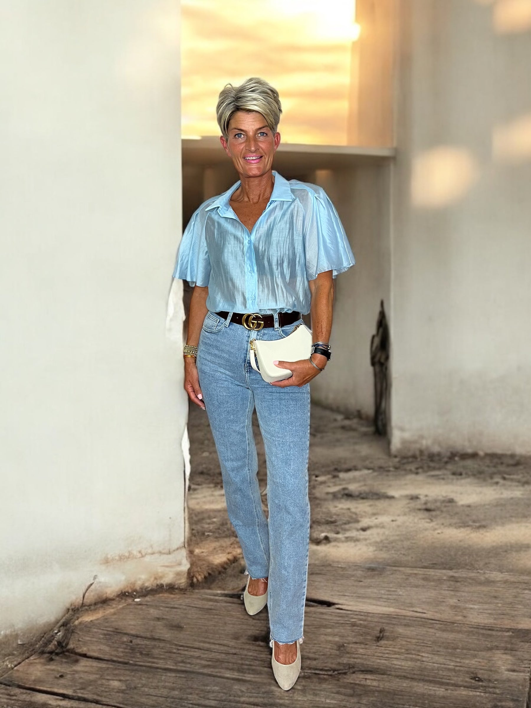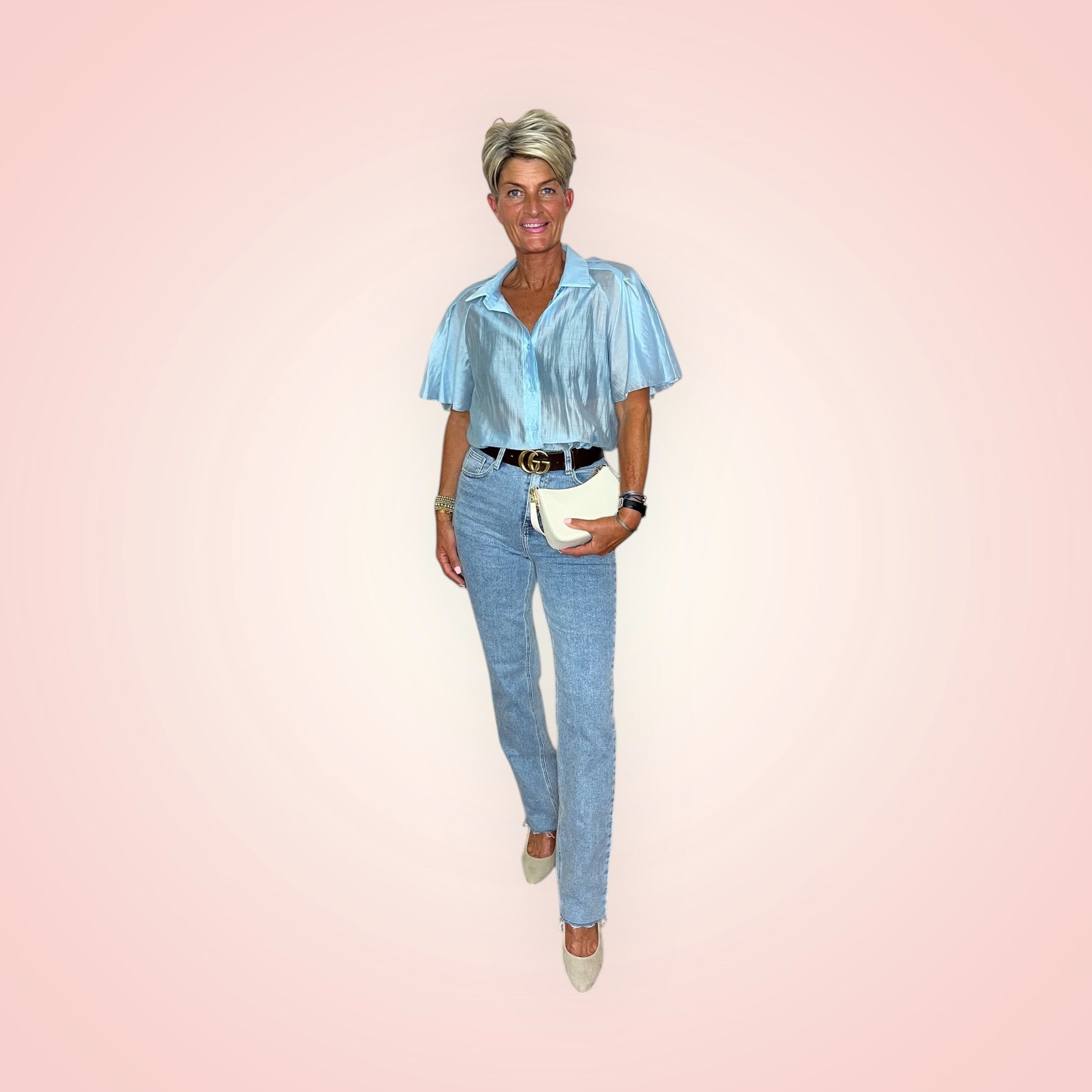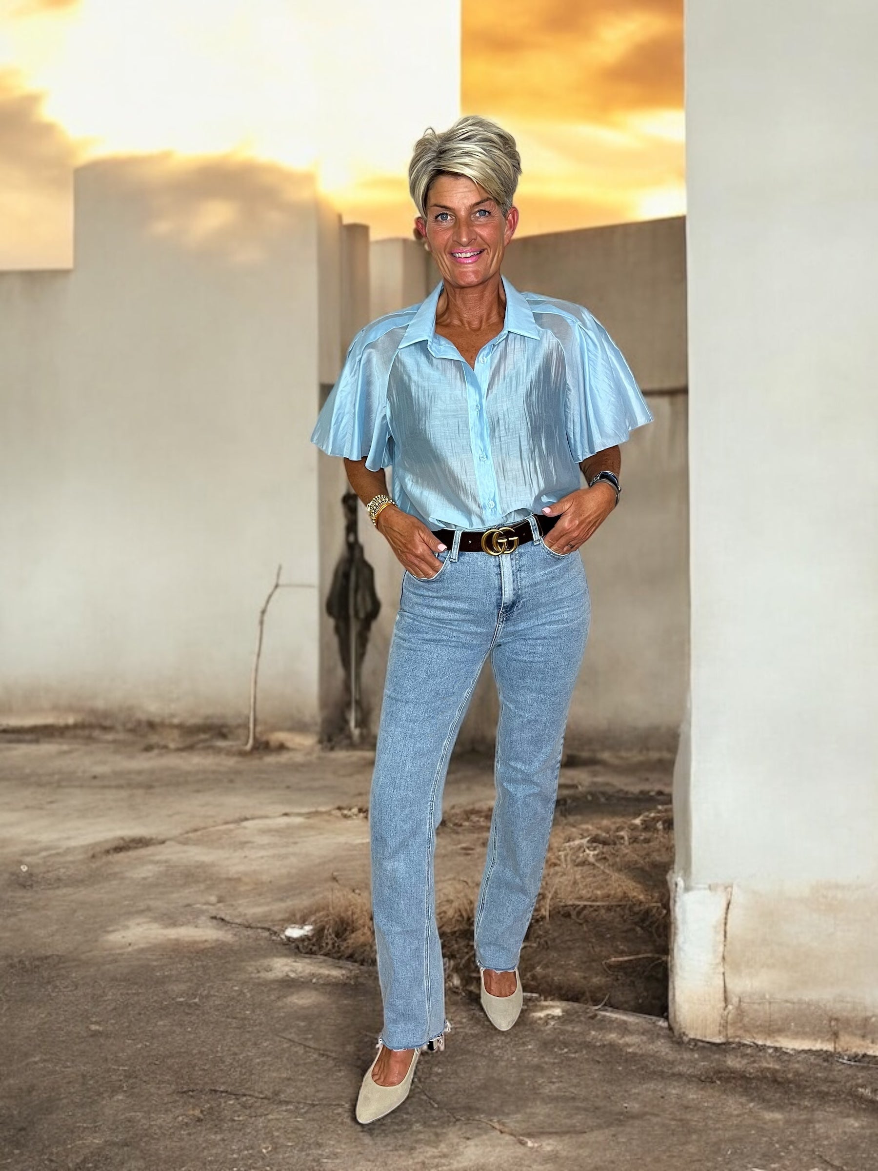 Chic en luchtig tegelijk, deze blouse met vlindermouwen is ideaal voor elke gelegenheid.