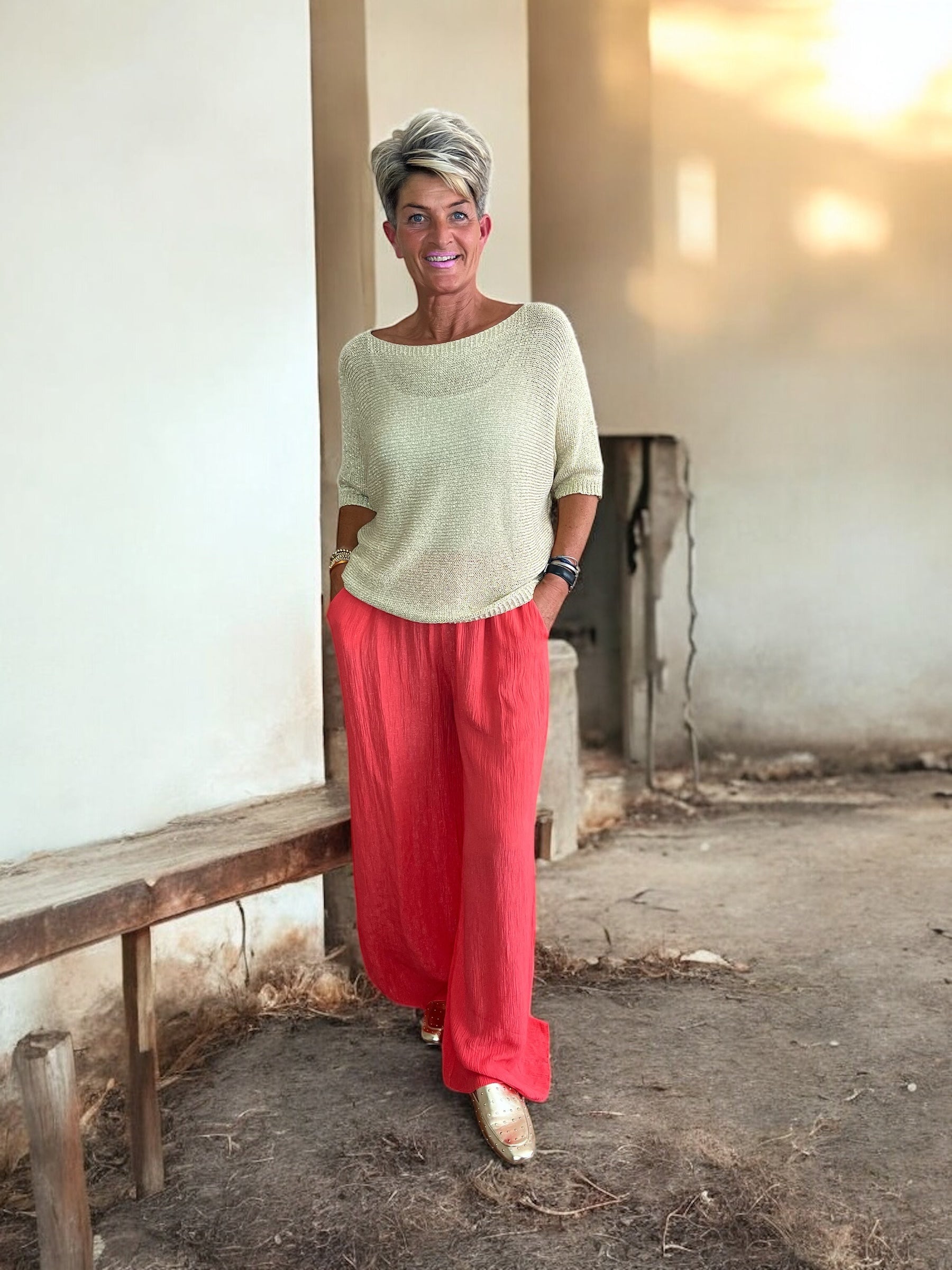 Deze koraal kleurige broek is alles wat je zoekt