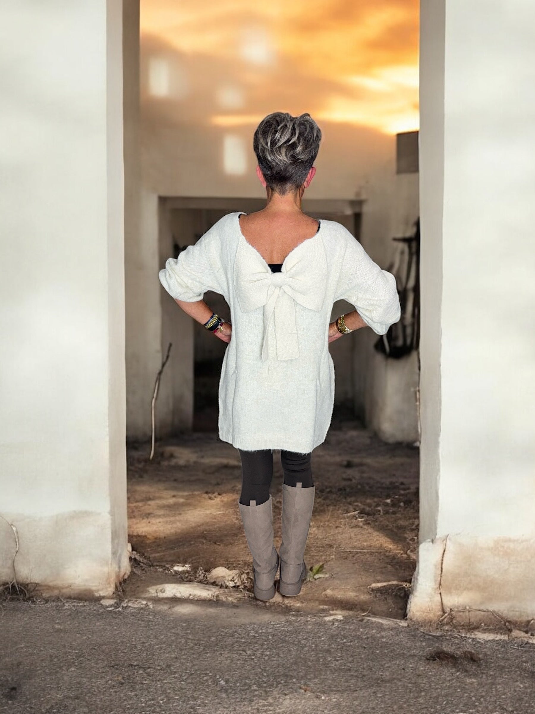 Maak een statement met deze prachtige jurk met een speelse strik op de rug!
