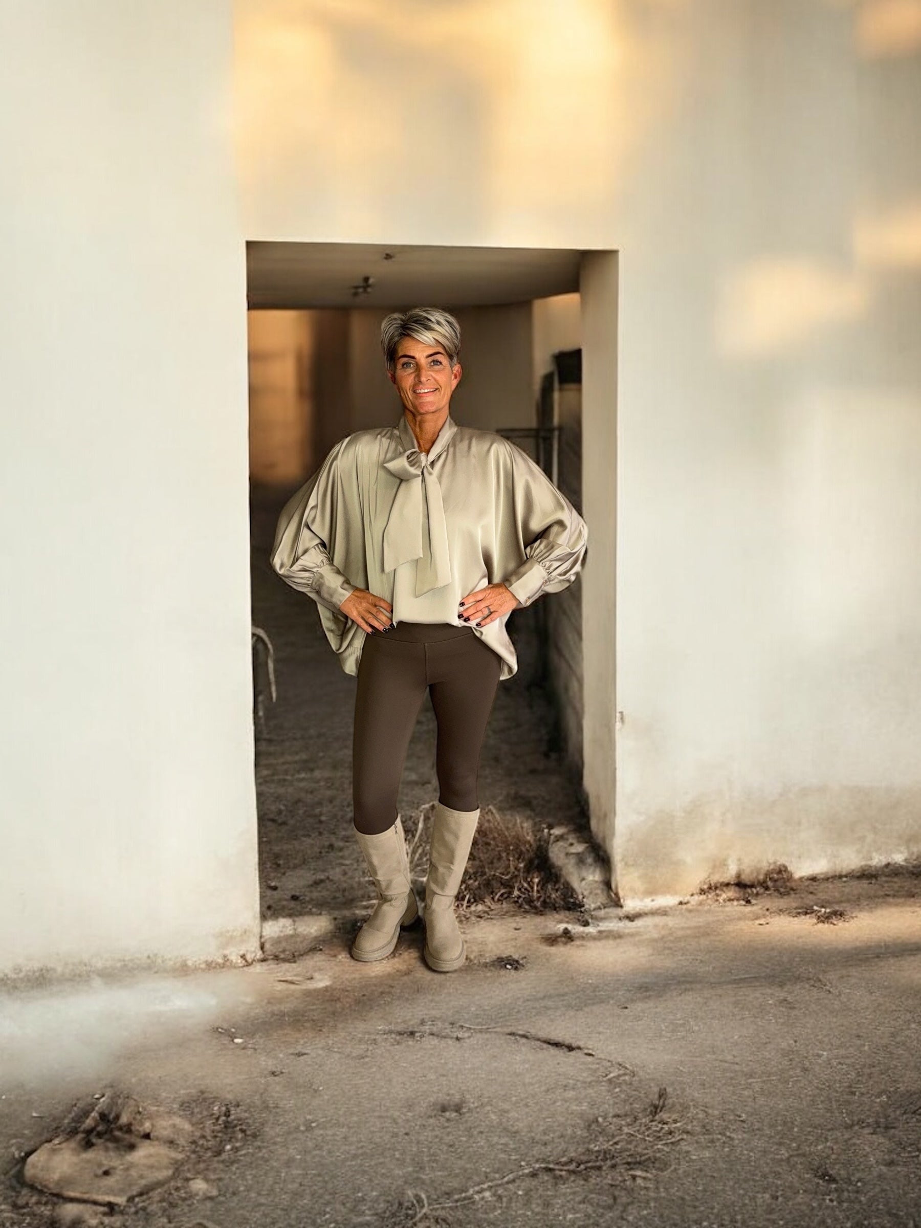De stof rekt mooi mee, sluit perfect aan en tekent niet af. Of je 'm nu combineert met een oversized trui, jurk of lange jas, jij ziet er altijd verzorgd uit én voelt je comfortabel.