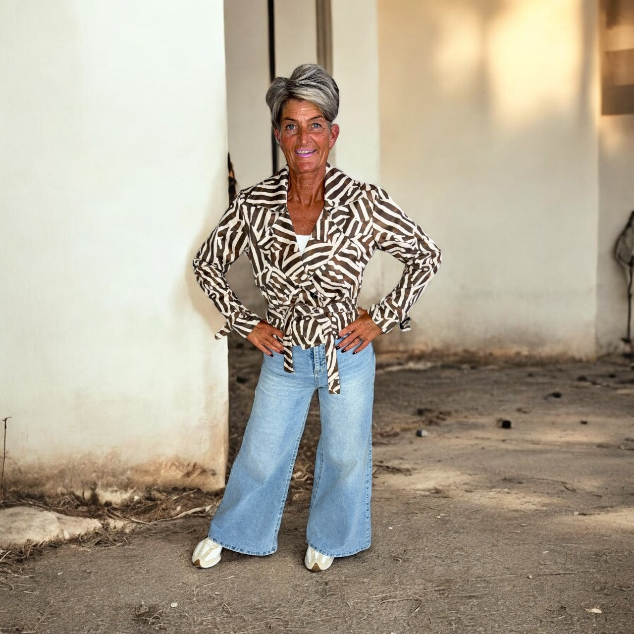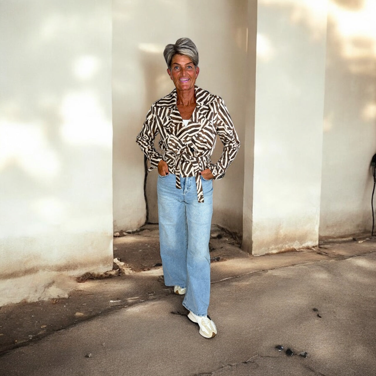 Ga voor een echte eye-catcher met deze korte trenchcoat in een stijlvolle zebra print! De combinatie van ecru en bruin geeft een chique, maar toch speelse uitstraling. Het korte model maakt hem perfect om casual te dragen met jeans, maar ook super stijlvol over een jurkje. Een musthave jas die jouw outfit direct een trendy boost geeft!