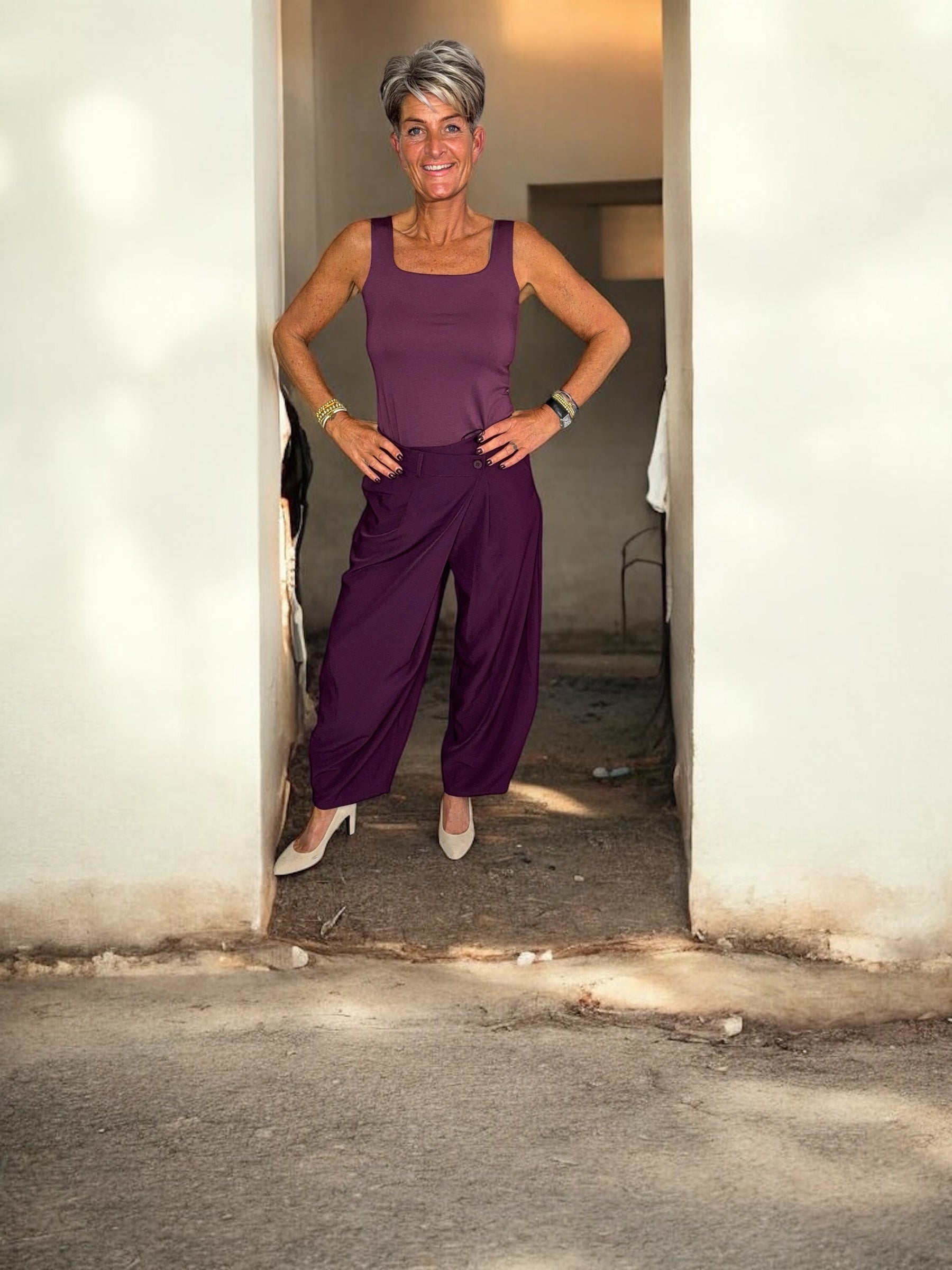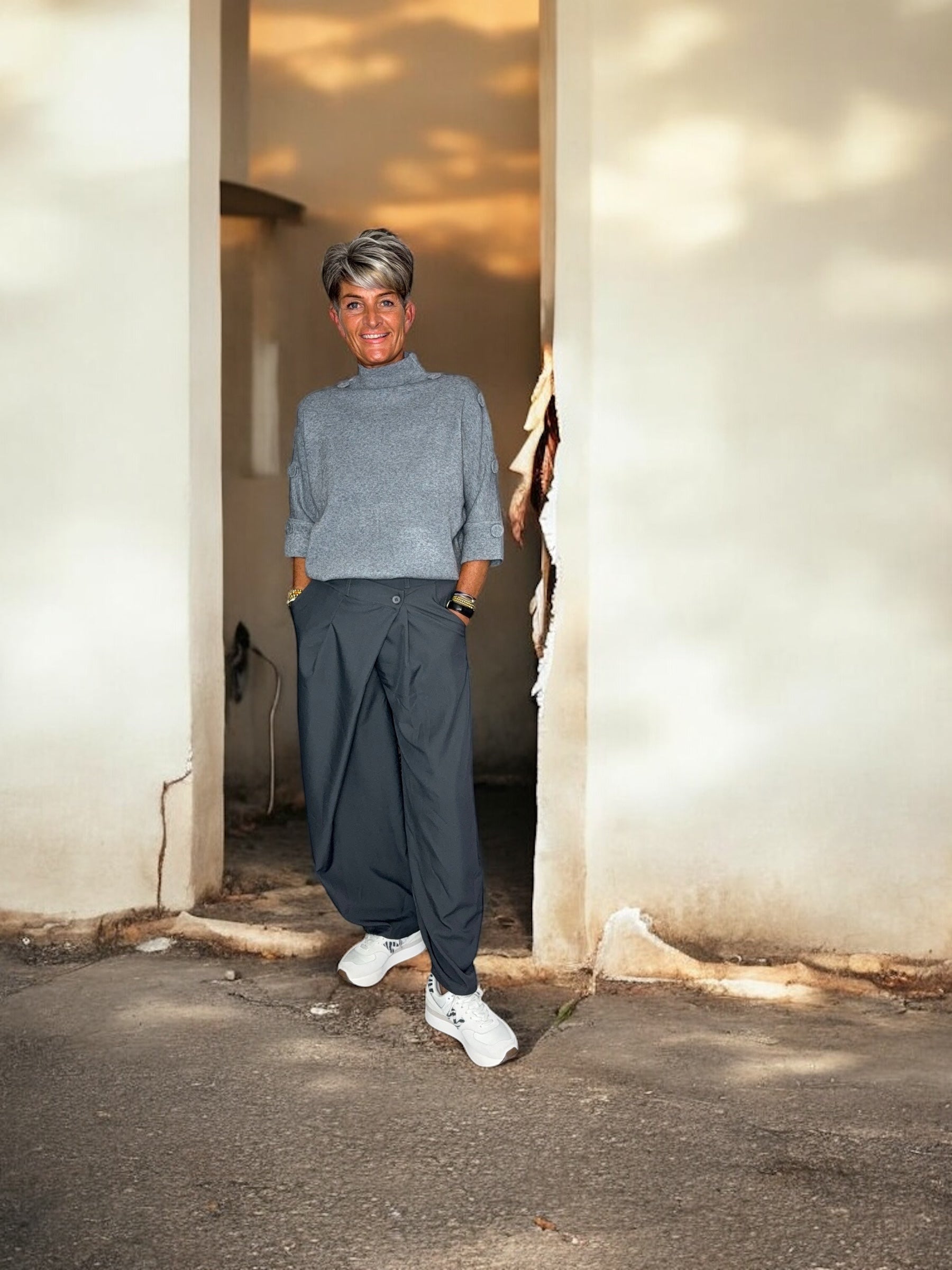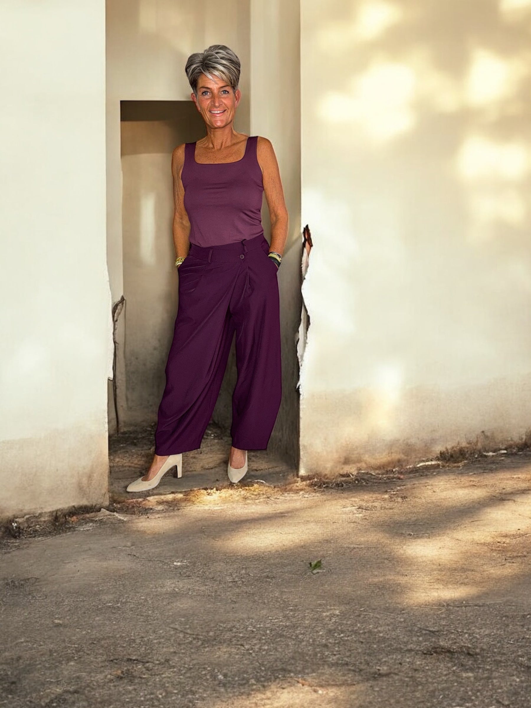 Comfy, cool en een tikje anders , deze overslag broek zit letterlijk én figuurlijk goed.